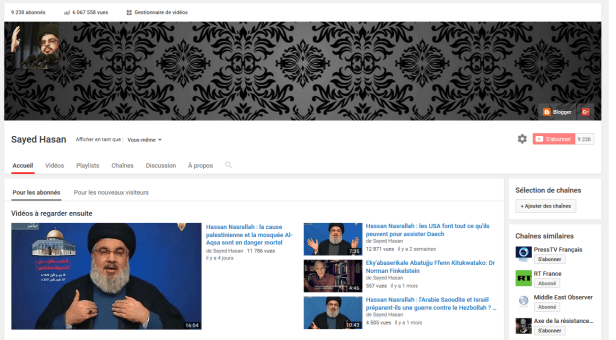 So there is nothing left of my channel, except an indication that “This account has been closed due to an infringement of the YouTube Community Guidelines.” Youtube sends the user to “similar channels” with no similitude whatsoever like BuzzFeed Video or … PewDiePie. When Youtube buries you, it’s for good, and you do not even have the right to a tombstone. No trace must remain. All this is of course eminently discouraging. Any “dissident” channel arriving at a certain degree of notoriety is therefore condemned to be deleted. What good is it to start from scratch? One must, however, not give in to censorship, nor give up in the face of adversity. When your enemies wish to neutralize you, this is proof that your efforts are having an impact and that you are on the right track, so it is an invitation to multiply your efforts and not to surrender. We must always strive to defeat the objectives of the opponent: Israel wants Hassan Nasrallah to disappear from Youtube? He must therefore be present there more than ever. To date, the monopoly of the main social networks remains relatively undisputed (after 5 years, the same video had less than 150 views on a parallel platform like Dailymotion and more than 65,000 on Youtube), and censorship itself is a sign of recognition of the importance of this work. Moreover, these are the instructions of Hassan Nasrallah himself, who has enjoined the whole world to a real electronic intifada against the Zionist entity.